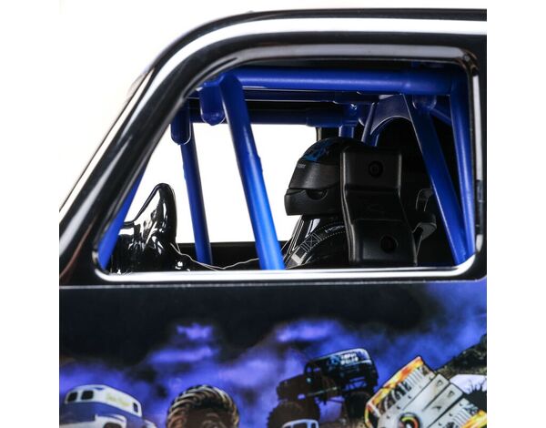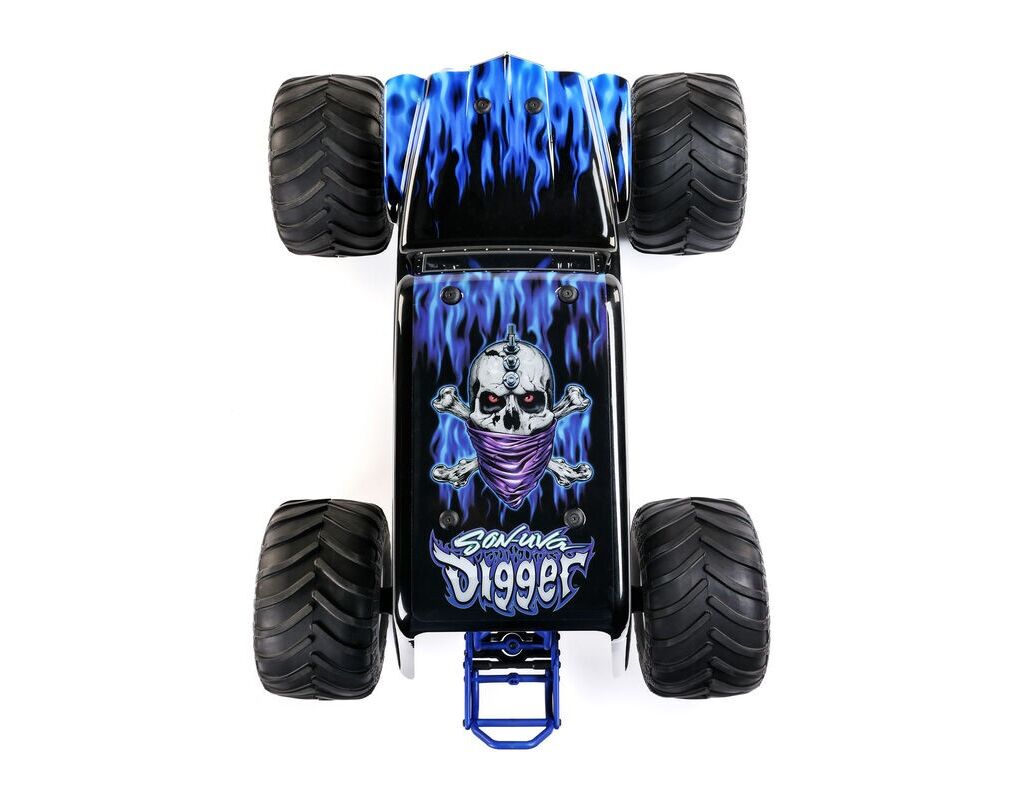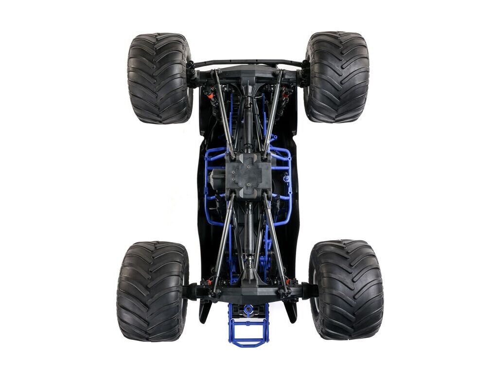 Das neue, pulverbeschichtete Aluminium-Chassis ist in Grün (Grave Digger) oder Blau (Son-uva Digger) erhältlich. Die überarbeiteten Achsgehäuse, breiteren 2.6-Zoll-Felgen und die offiziell lizenzierten BKT-Reifen mit realistischem Chevron-Profil sorgen für eine noch dominantere Optik und bessere Fahreigenschaften auf verschiedenen Untergründen.