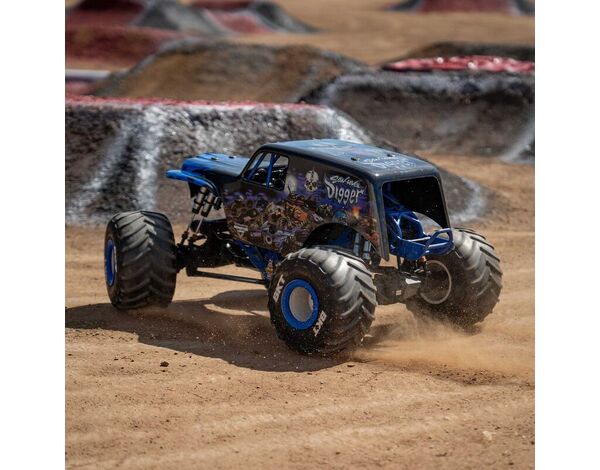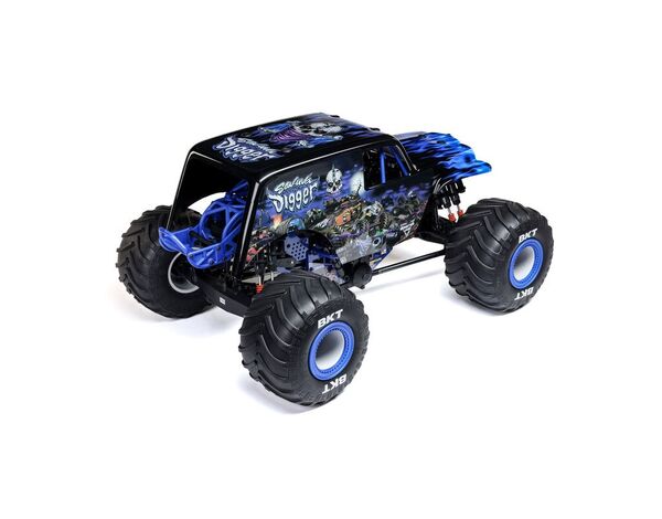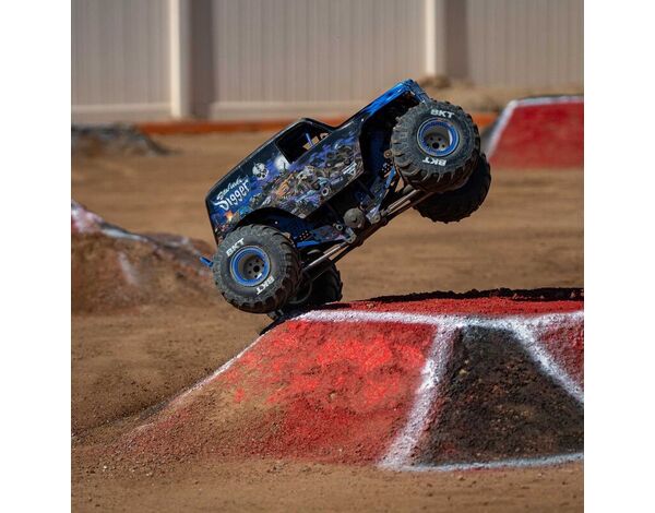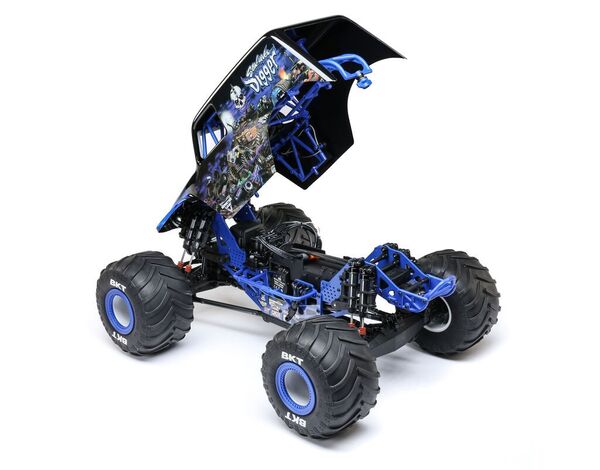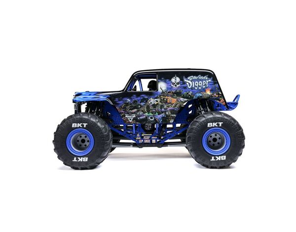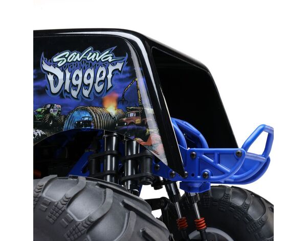 Das neue, pulverbeschichtete Aluminium-Chassis ist in Grün (Grave Digger) oder Blau (Son-uva Digger) erhältlich. Die überarbeiteten Achsgehäuse, breiteren 2.6-Zoll-Felgen und die offiziell lizenzierten BKT-Reifen mit realistischem Chevron-Profil sorgen für eine noch dominantere Optik und bessere Fahreigenschaften auf verschiedenen Untergründen.