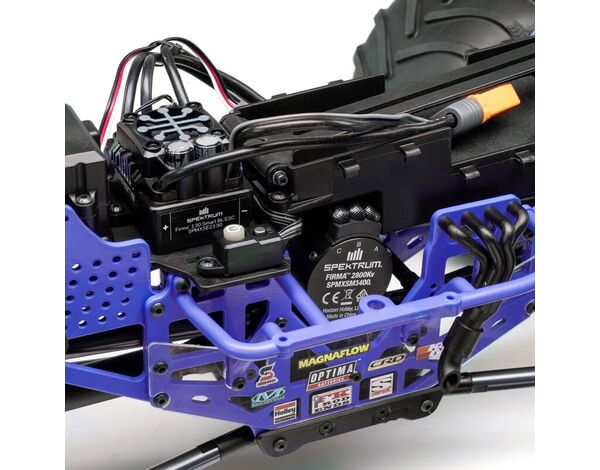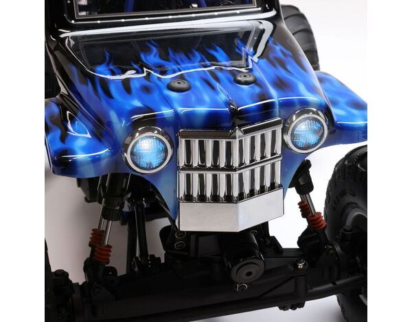 Die Flip-Top-Karosserie ermöglicht einen schnellen Zugang zum Akku, während die werkseitig lackierten Karosserien mit Details wie LED-Scheinwerfern, Auspuffrohren und Fahrerfiguren beeindrucken. Der LMT 2.0 ist RTR (Ready-to-Run) und benötigt nur noch einen Akku und ein Ladegerät, um loszulegen.