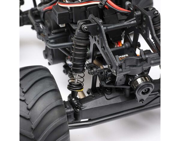 Der Losi Mini LMT 4WD verfügt über eine Wheelie-Bar mit einer breiten Rollachse, die in zwei festen Positionen einstellbar ist. Wähle deinen bevorzugten Wheelie-Bar Winkel und lasse die Show beginnen!