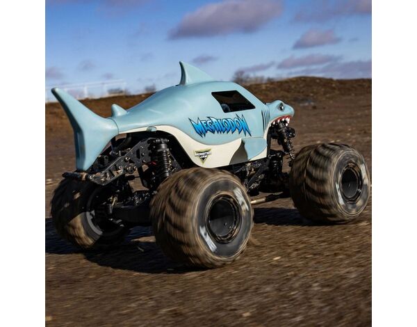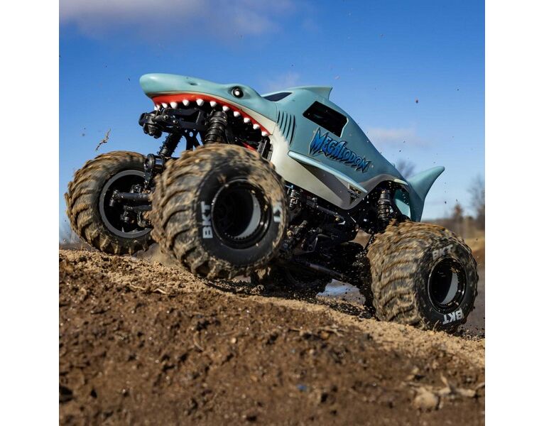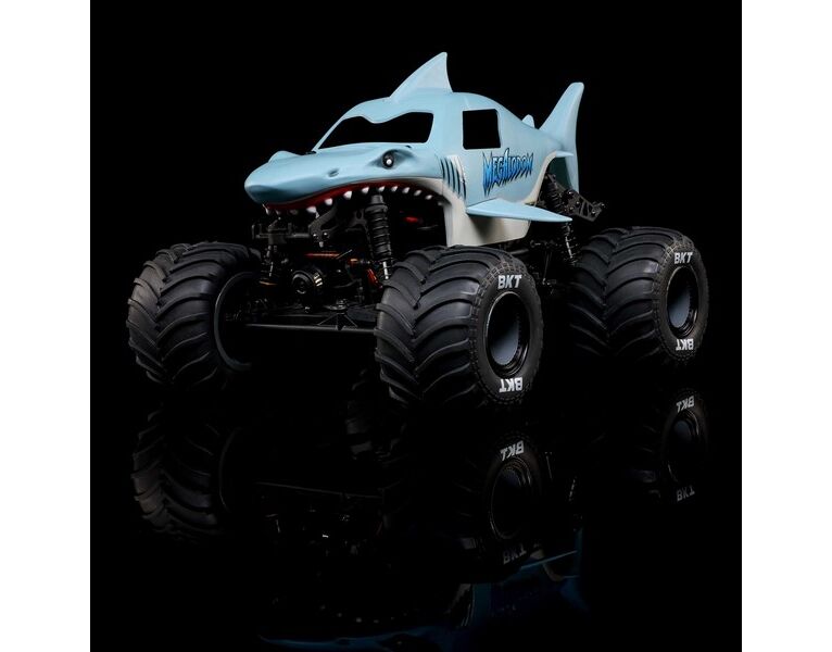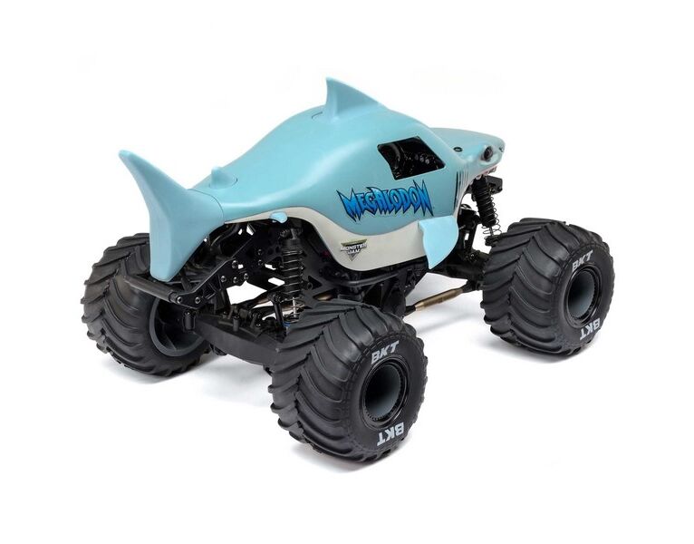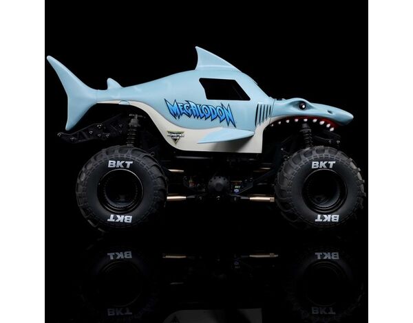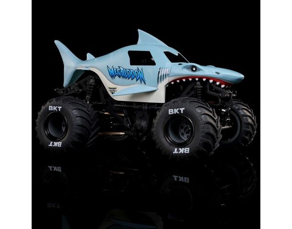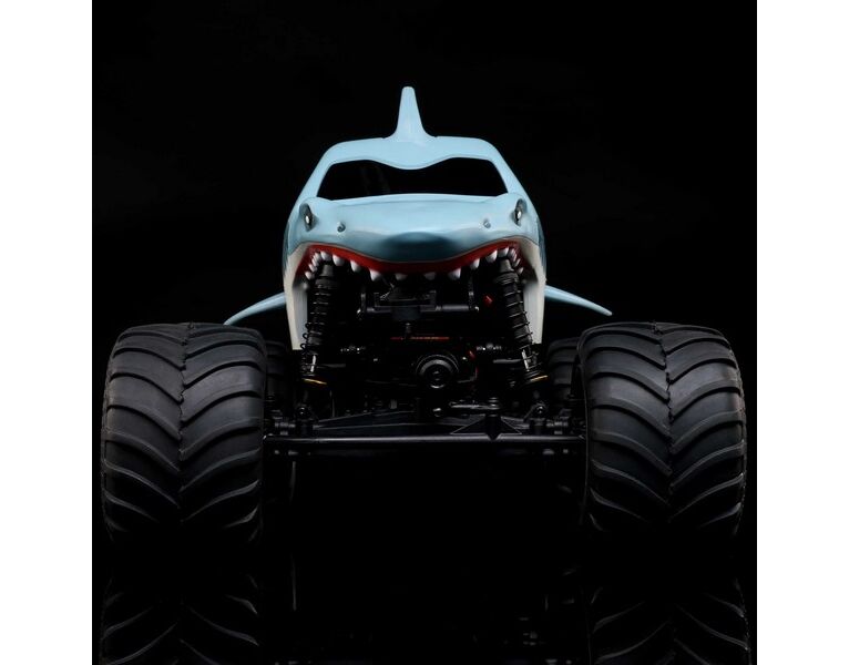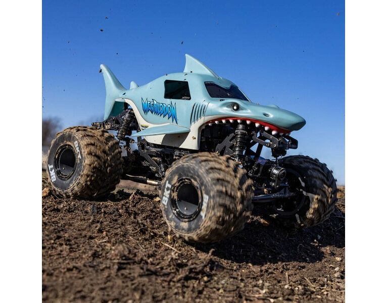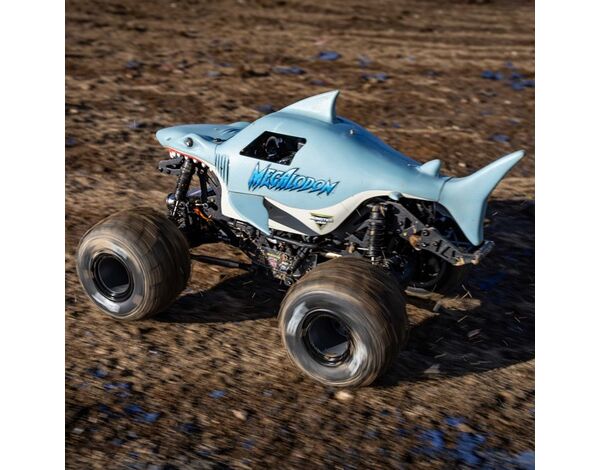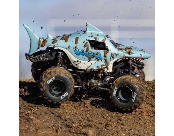 Der Monster Jam®-Favorit Megalodon ergänzt die Mini LMT-Reihe mit bewährter Performance in einer kostengünstigen, überall einsetzbaren Fahrzeuggröße. Der Megalodon bietet RC-Monstertruck-Spaß für alle Altersgruppen – und vom Haifischmaul bis zur Schwanzflosse ist er der berühmten Hai-Karosserie in haltbarer Form nachempfunden.
