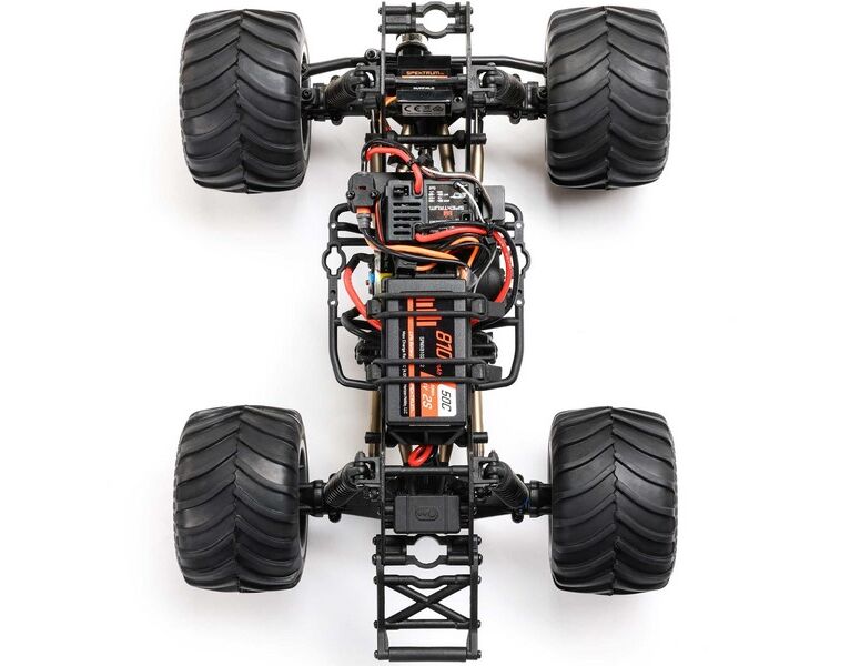 Der Losi Mini LMT 4WD-Monstertruck ist werkseitig zusammengebaut und fahrbereit und enthält alles, was für den Betrieb erforderlich ist – einschließlich einer hochwertigen Spektrum SLT2 Fernsteuerung für eine störungsfreie 2,4-GHz Kontrolle sowie einen leistungsstarken Spektrum Smart LiPo Akku und ein Ladegerät, für lange Fahrzeiten und müheloses Aufladen.