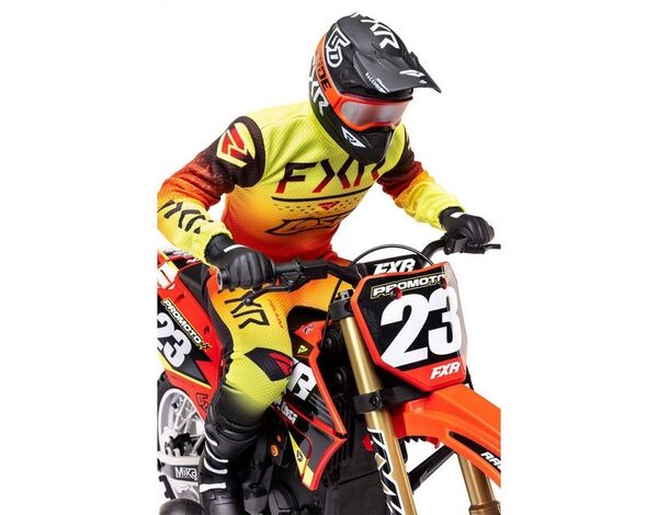Losi hat sich mit FXR Racing zusammengeschlossen – einem führenden Hersteller von Helmen, Trikots, Hosen und anderem Zubehör für echte Motocross-Enthusiasten – um das offiziell lizenzierte Design für das Promoto-MX zu erstellen. So sieht das Promoto-MX perfekt aus und wartet nur darauf, dass das Startgatter fällt.