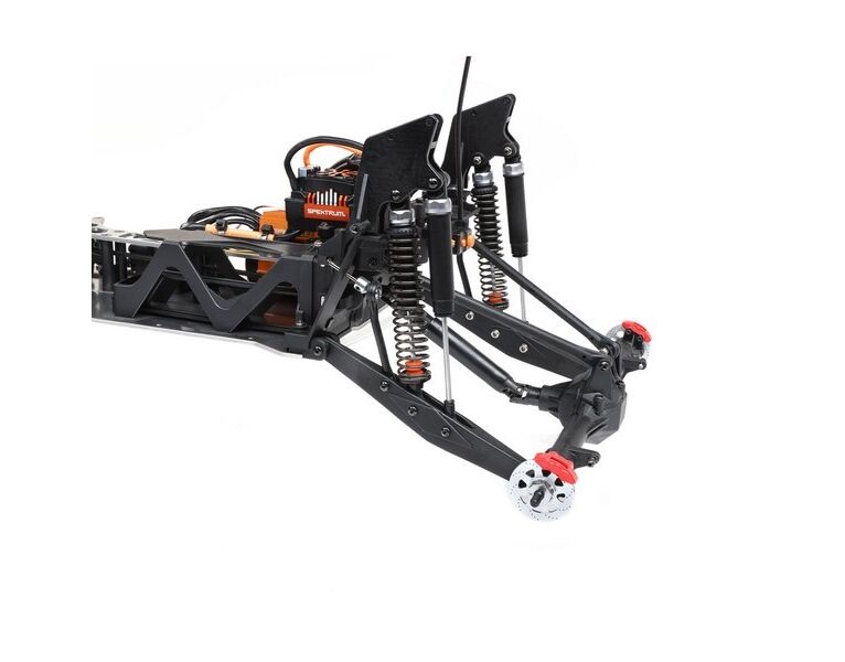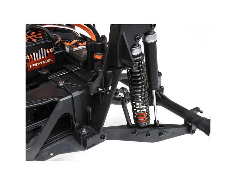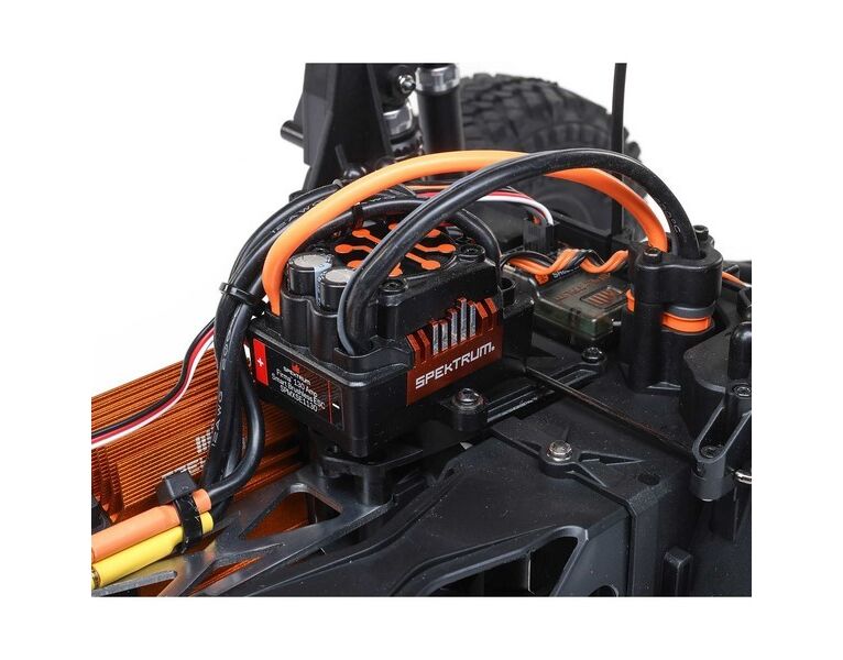 Der Truck ist mit einem brushless Spektrum™ 3150Kv-Motor und einem Smart 130A ESC mit 6-Kanal-DSMR-AVC/Telemetrieempfänger ausgestattet, der Spektrum Smart-Feedback einschließlich Echtzeit-Akkuspannung liefert. Diese leistungsstarke Kombination kann mit bis zu 3S LiPo-Akkus (separat erhältlich) umgehen und ermöglicht es dir, mit einer Geschwindigkeit von bis zu 64 km/h durch die Landschaft zu rasen.