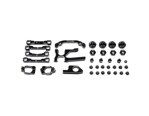 Da das Team viele der optionalen Aluminiumteile für den 22X-4 gefunden hat, um die Wartung oder Leistung zu verbessern, haben wir diese ebenfalls in das Kit aufgenommen. Die enthaltenen Aluminiumteile sind die Drag-Ling, die Caster-Blocks, alle vier inneren Pivots, die Motorhalterung, die vorderen und hinteren Hex-Aufnahmen, die Ball-Stud-Scheiben und die Aluminiummuttern rundum.