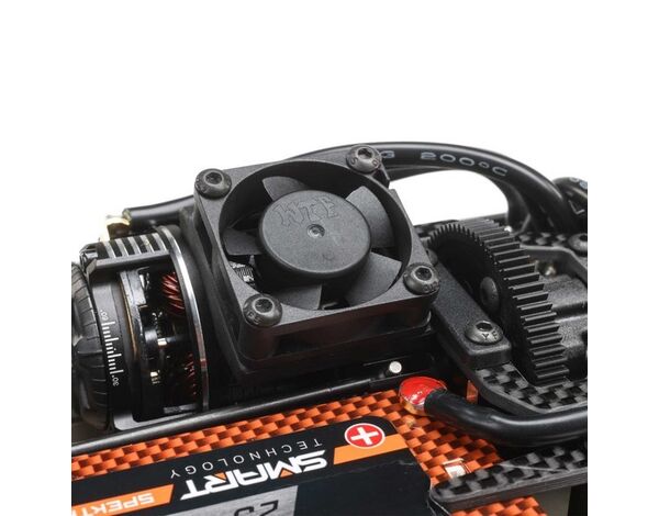 Die Beliebtheit von Strecken mit hohem Grip und die 13.5 4WD-Klasse hat dazu geführt, dass viele Fahrzeuge Motorlüfter benötigen, um die Temperaturen unter Kontrolle zu halten. Anstelle einer Aluminiumhalterung oder doppelseitigem Klebeband verfügt der 22X-4 ELITE über eine geformte Lüfterhalterung, die am mittleren Differential befestigt ist, um Luft direkt in den Motor zu blasen, um mit den kühlsten Temperaturen die meiste Leistung zu erzielen.