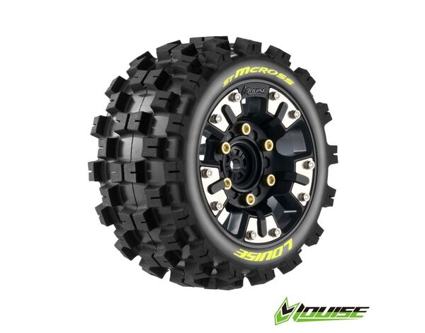 LOUT3390SM Louise ST-MCROSS Kompletträder (2) Schwarze Felgen 12mm HEX Traxxas Mini Maxx Mini XRT