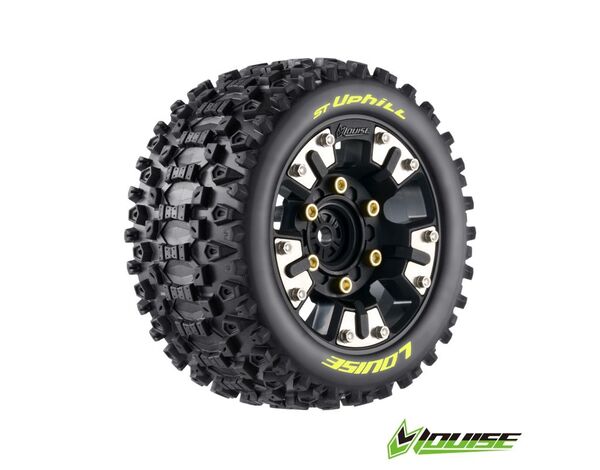 LOUT3388SM Louise ST-UPHILL Kompletträder (2) Schwarze Felgen 12mm HEX Traxxas Mini Maxx Mini XRT