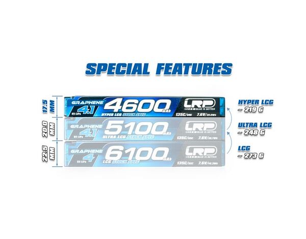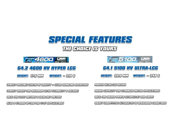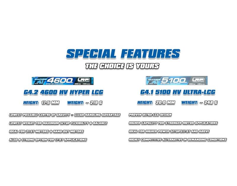 Für Anwendungen mit stärkeren Motoren bleibt der bewährte LRP G4.1 5100 Ultra-LCG (#432277) eine weiterhin hochkompetitive Alternative.