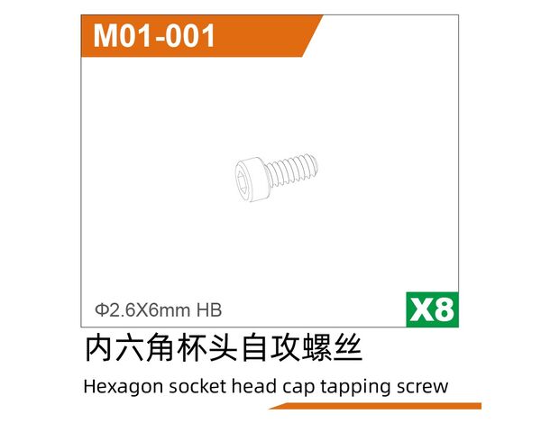 UDM01-001 Ø2.6x6 HB Hexagon socket head cap tapping screw(8pcs) UD1610P
