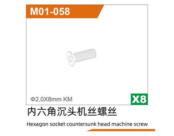 UDM01-058 M2.0x8KMHexagonal countersunk head machine screw(8pcs) UD161