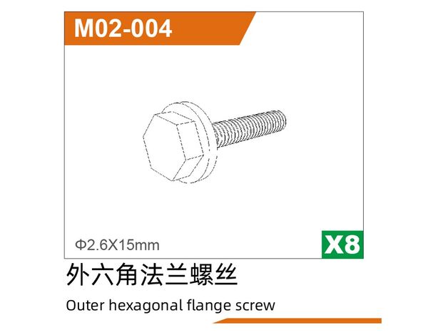 UDM02-004 Ø2.6x15mmOuter hexagon flange screws UD1611