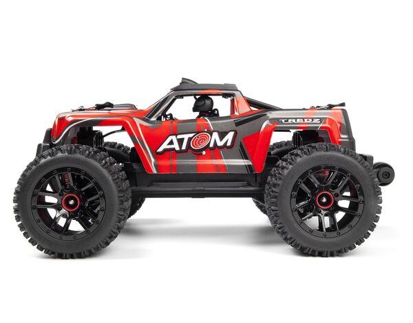Der ATOM AT1 ist mit einem starken Kardan-Antriebsstrang und 3-Gang-Differentialen ausgestattet, die für Stabilität und ausgezeichnetes Handling sorgen. Die Leistung wird effizient auf den Boden gebracht, was zu beeindruckenden Fahreigenschaften führt. Der Truck verfügt über eine käfigverstärkte, individuell bedruckte Karosserie, die in vier Farben erhältlich ist. Jede Version des ATOM kommt mit farblich abgestimmten Stoßdämpfern, einem Kühlkörper und Radnaben-Zubehör.