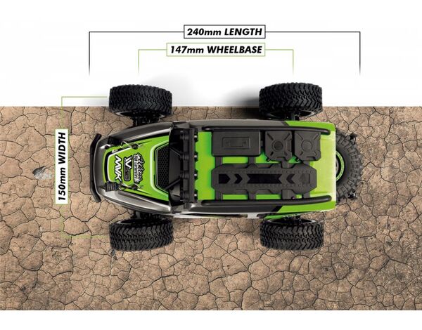 Maßstab und Leistung: Der DOHA ist ein Lastwagen im Maßstab 1:20, der die robusten Fähigkeiten der größeren RC-Modelle in einem handlichen Format bietet. Er verfügt über ein langlebiges Wellengetriebe, 3-Gang-Differentiale und einen 370er-Motor, der für eine beeindruckende Geschwindigkeit und Beschleunigung optimiert wurde. „Der DOHA 1:20 Desert Truck bietet ein aufregendes, langlebiges und benutzerfreundliches RC-Erlebnis, perfekt für erfahrene Enthusiasten und Neueinsteiger.“