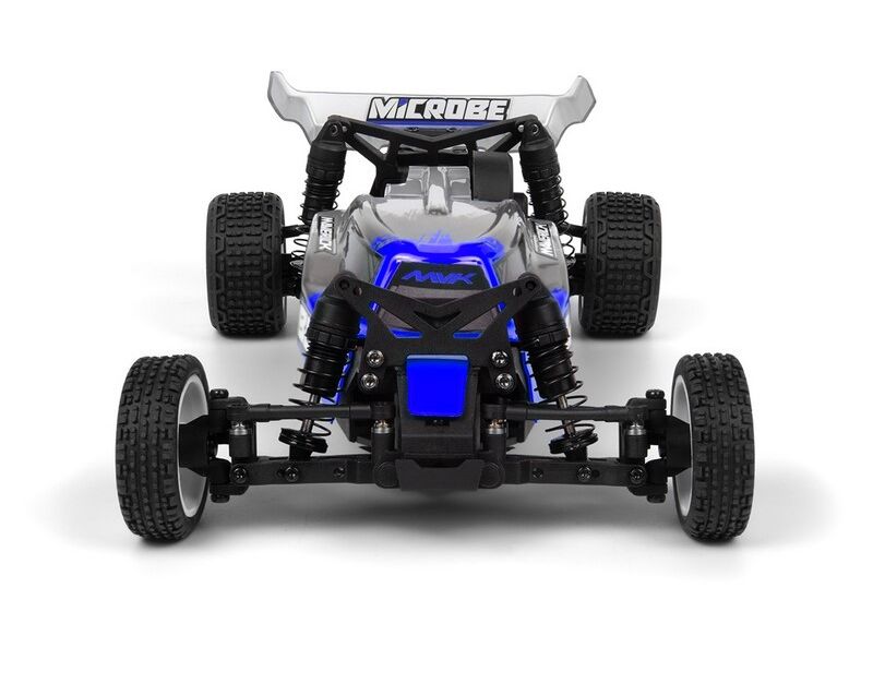 Ein schlankes 1,5 mm starkes Chassis aus eloxiertem Aluminium, ein vollständig kugelgelagerter Antriebsstrang und ein leichtgängiges 3-Gang-Heckgetriebe sorgen gemeinsam für ein stabiles, präzises Fahrgefühl des Microbe. Dazu kommen ölgefüllte Gewindefahrwerke und belüftete Räder mit Schaumstoffeinlagen – und schon haben Sie einen winzigen Buggy, der gerne Kurven nimmt, Unebenheiten abfedert und mit Zuversicht aus Kurven herausschießt.