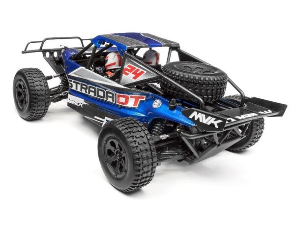 Der Strada DT 4WD Wüstentruck besitzt einen komplett geschlossenen Überrollkäfig mit coolen, integrierten lackierten Karosserieteilen, die nicht nur cool aussehen, sondern auch zusätzlichen Schutz für die Chassis Komponenten bieten.