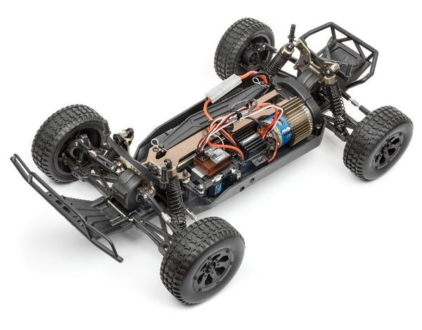 Der Strada DT besitzt ein gegossenes Wannenchassis, das Haltbarkeit bietet und eine sowohl stabile als auch robuste Plattform für den kräftigen 4WD Kardanantrieb ist. Vormontierte, ölbefüllte Stoßdämpfer und Doppelquerlenker-Einzelradaufhängung vorne und hinten bieten Dir ein super feinfühliges Fahrgefühl in jedem Gelände. Das MS-22 Servo setzt Deine Lenkbefehle, über ein doppelt gelagertes Lenksystem mit integriertem Servo-Saver gegen Unfallschäden, um.