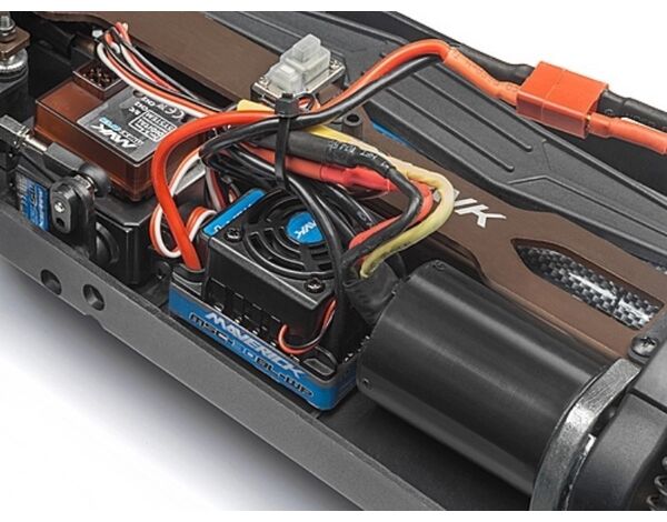 Der Brushless Motor MM-22BL mit schwarzem Aluminium-Gehäuse weist 3215KV auf und ist mit 4mm Goldsteckern ausgestattet. Zum Einsatz kommt des Weiteren ein wasserdichter Brushless-Fahrtenregler des Modells MSC-30BL-WP. Dank dieser Ausstattung erreichen die Fahrzeuge der Red-Serie bisher unerreichte Leistungswerte.