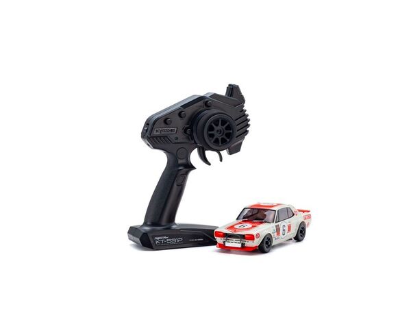 32643R Kyosho Mini-Z AWD Skyline 2000GT-R KPGC10 Racing'72 Red No.6 (MA020/KT531P)To bring its dynamic performance to even more drivers, the MINI-Z AWD is now available in a Readyset. The MA-020 chassis features VCS (variable camber suspension) on the front that optimizes camber change with suspension stroke and a specially designed circuit board. The chassis design allows space for installing the optional gyro unit(Sold separately:No.MZW446). The gyro can be adjusted by turning a small volume on the chassis to reflect the amount of steering correction in response to changes in chassis posture, allowing beginners through to experts to drive to their full potential. Fully fitted out with precision ball bearings, the high drive efficiency of the MA-020 chassis is complimented in the Readyset by the unique scale body and 2.4GHz Syncro KT-531P R/C system that requires no frequency band setting; all at a great value price. Simply set the batteries to enjoy the thrill of drift driving with t