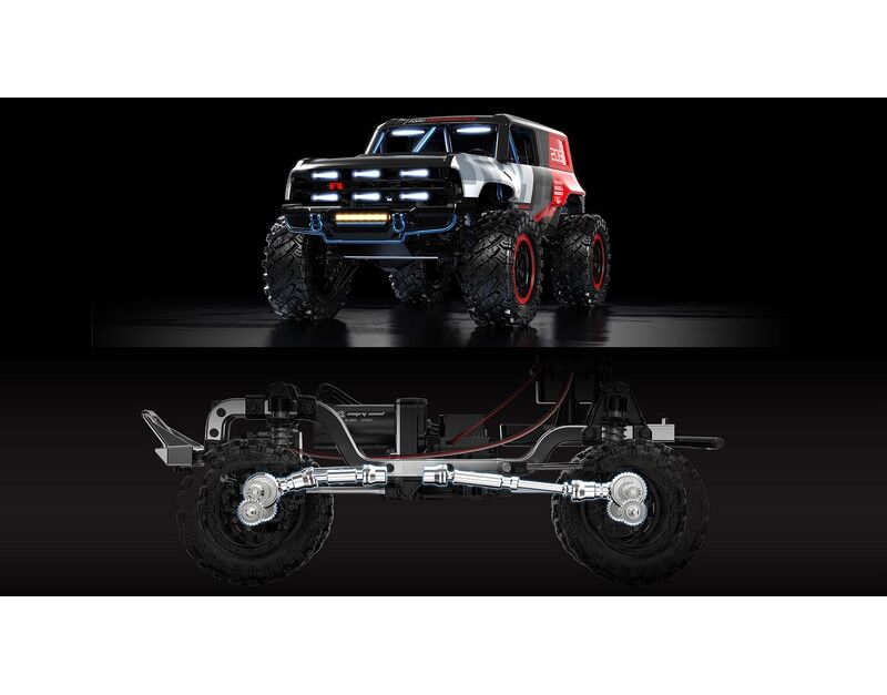 Der MJX Hyper GO H12P (Ford Bronco R Baja1000) ist ein detailgetreuer 1/12 Crawler mit Brushless-Antrieb, robustem Metall Leiterrahmen und lizensierter ABS-Scale-Karosserie. Portalachsen (Gate-Bridge-Getriebe), ein 20 kg Metallgetriebe-Servo sowie ölbefüllte Metall-Stoßdämpfer sorgen für kontrollierte Traktion und fein dosierbares Klettern auf Fels, Schotter oder Waldpfaden. Der 45A-Brushless-Regler (E45M) in Kombination mit dem 3650-Motor liefert sattes Drehmoment für technisches Crawlen.
