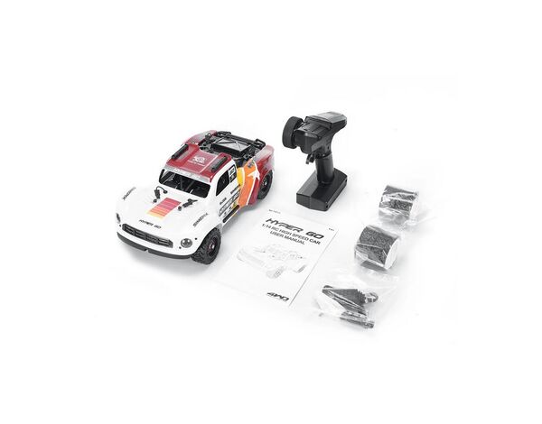 MJX HYPER GO 14211 (RTR), 2.4 GHz T3D Fernsteuerung, 7,4 V 3000 mAh LiPo-Akku, USB-Ladekabel, Zusatz-Radsatz (4 Stück, weiße Felgen), Werkzeug, Anleitung.