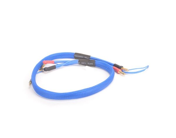 2S Lipo charge lead with 4mm charger input plugs and 4-5mm battery plugs, including 2mm balance plug. 600mm. Extremely versatile, suits a wide range of chargers!