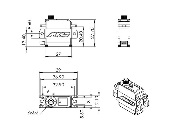 MKS HV50P Digital Microservo 1:12 Pan Car 0.071s/60°, 8.3kg - 8.4V