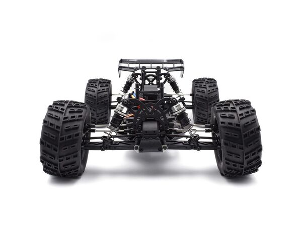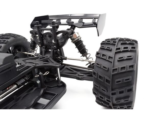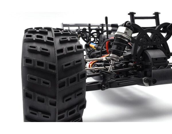 Für eine robuste Geländegängigkeit verfügt er über ein starkes Kunststoff-Chassis und eine Wasserdichte Empfängerbox. Um das Servo vor Schlägen zu schützen, wurde ein einstellbarer Servosaver verbaut. Die Differentiale sind aus gehärtetem Stahl gefertigt und werden zusätzlich von einer stark ausgeführten Slipper-Kupplung geschützt.