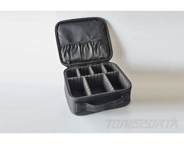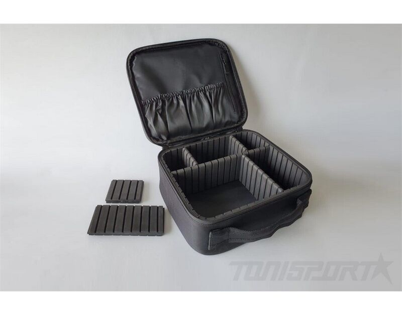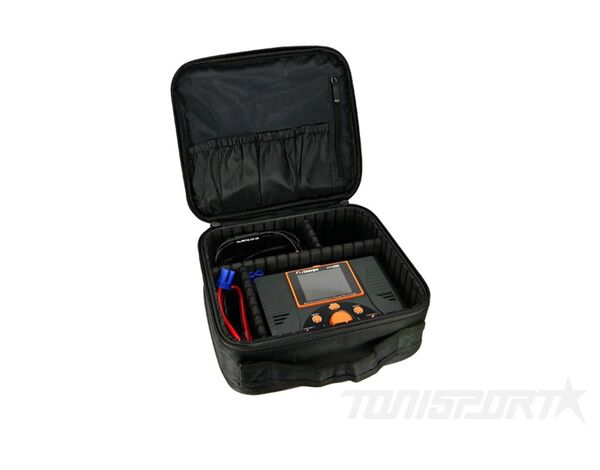 Mit dem praktischen Charge Hard Case Bag von MR33 könnt ihr euer Ladegerät oder auch andere wertvolle Bestandteile der RC-Ausrüstung sicher transportieren. Das Innenleben der Tasche lässt sich beliebig verändern und macht sie damit zu einem super Allrounder. Auf der Innenseite des Deckels findet man kleine Taschen in denen sich z.B. Ladekabel perfekt verstauen lassen.