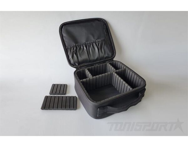 The MR33 Charge Hard Case Bag is a durable and solid bag with interchangeable inserts for multiple configurations. You can carry your charger or other important RC products in the case and you will always know them well protected. On the inside of the top end cover you find some small pockets where you can stow charging leads and other wires for example.