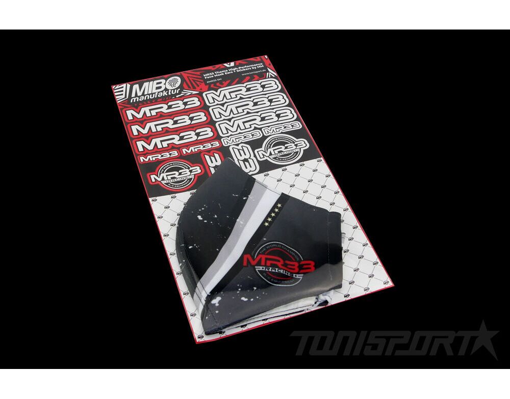 MR33 Mund- und Nasenschutz in coolem Design. Auch wenn die Maske kein sehr beliebtes „Tuningteil“ ist, so gibt es auch hier einige entscheidende Unterschiede. Die MR33 Maske ist aus einem angenehmen Material gefertigt und hat einen, auch für Brillenträger, gut geeigneten Schnitt. Da die Maske an der Nase etwas höher abschließt beschlagen Brillen nicht so schnell und man kann besser RC Car fahren. Ein kleiner MR33 Aufkleber Bogen rundet diesen gelungenen Artikel perfekt ab.