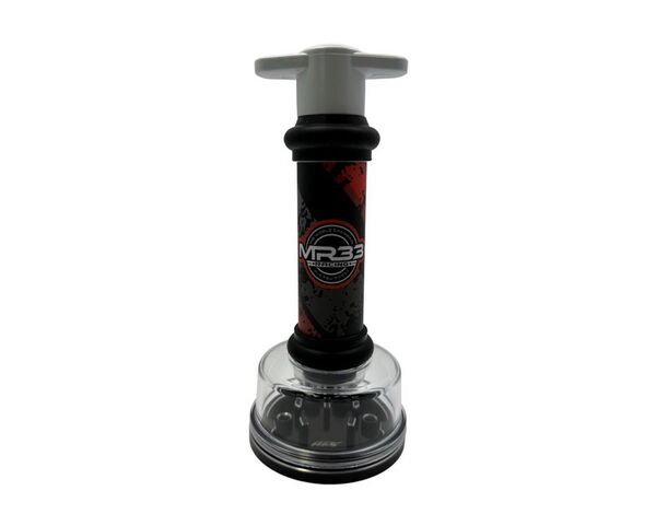 Das Set besteht aus einer Vakuum Pumpe inkl. Kunststoffdeckel und Gummidichtung, sowie dem A800R ShockVac Aluminium Ständer von MXLR (MAX-02-003).