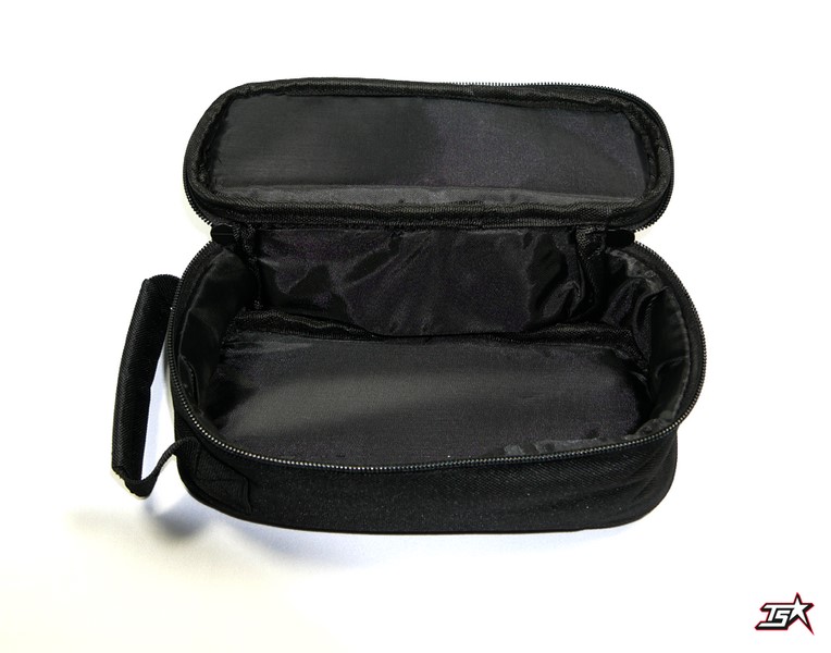 The smallest version of MR33 Bags provides enough space to carry the most important tools which you will need frequently on your pit table! The inner dimensions of 18 x 10 x 6 cm allow you to stow different kinds of “RC-tools” in style! A bigger Version is also available with the part number MR33-TB.
