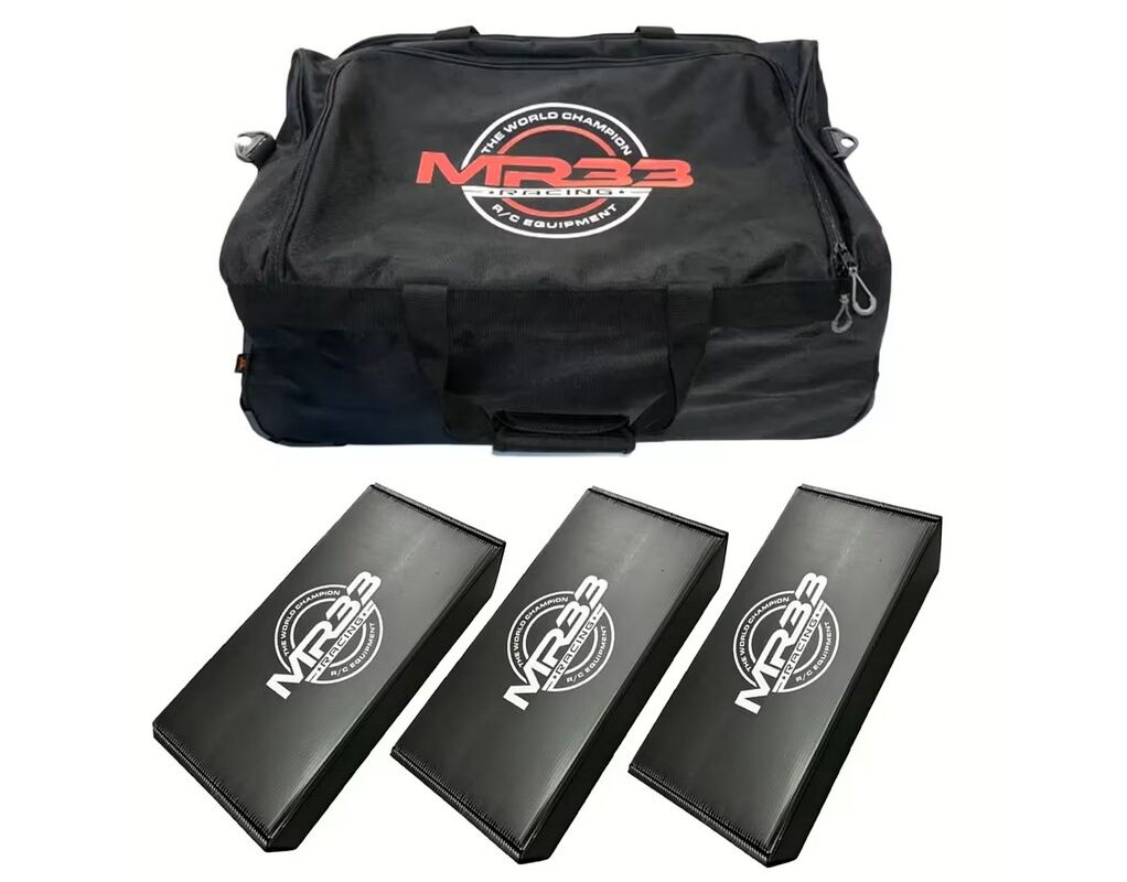 Die neue MR33 Tasche ist perfekt für den coolen Auftritt an der Rennstrecke geeignet. Sie ist aus robustem und langlebigem Material gefertigt und mit dem aktuellen MR33 Logo bedruckt. Die Tasche hat eine ausziehbare Teleskopstange und kann über die beiden Kugelgelagerten Rollen bequem gezogen werden. Der stabile Handgriff sorgt für ein einfaches Handling der Tasche und es liegt auch ein Gurt zum Umhängen bei! Auf den Bildern ist die Tasche mit den 2 großen (XR-397241) und einer kleinen (XR-397242) Teilebox von Xray zu sehen. Die Boxen gehören zum Lieferumfang.