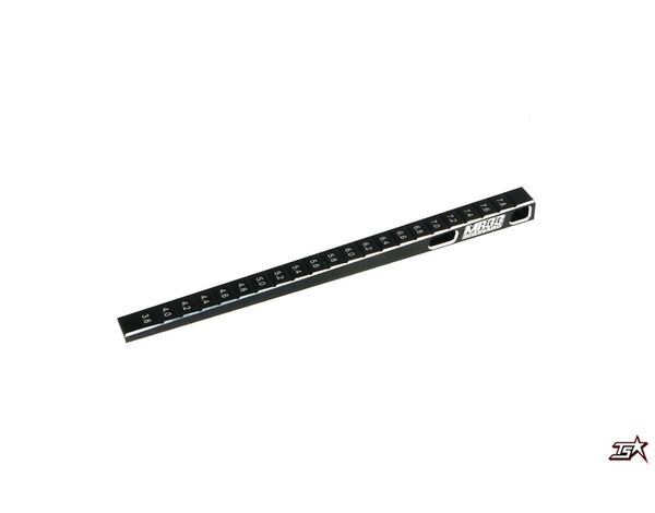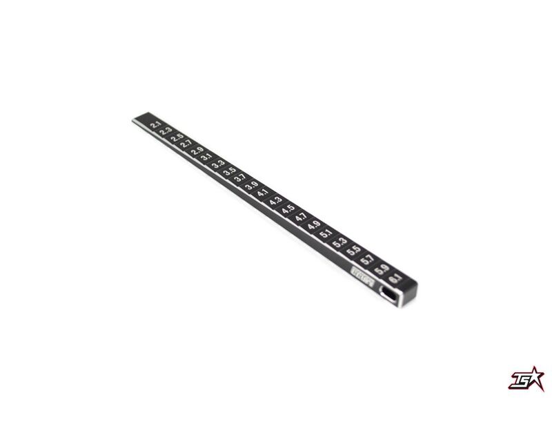 Die neue, doppelseitige Höhenmesslehre von MR33 hat einen feineren Messbereich als ihr Vorgänger. Die Lehre reicht von 2,0 – 6,1mm und ist in 0.1mm Schritte eingeteilt. Das präzise Einstellen der Fahrwerkshöhe ist damit so einfach wie nie zuvor! Die Höhenmesslehre ist aus Aluminium, schwarz eloxiert, hat silberne Kanten und ist mit einem typischen MR33 Logo versehen!