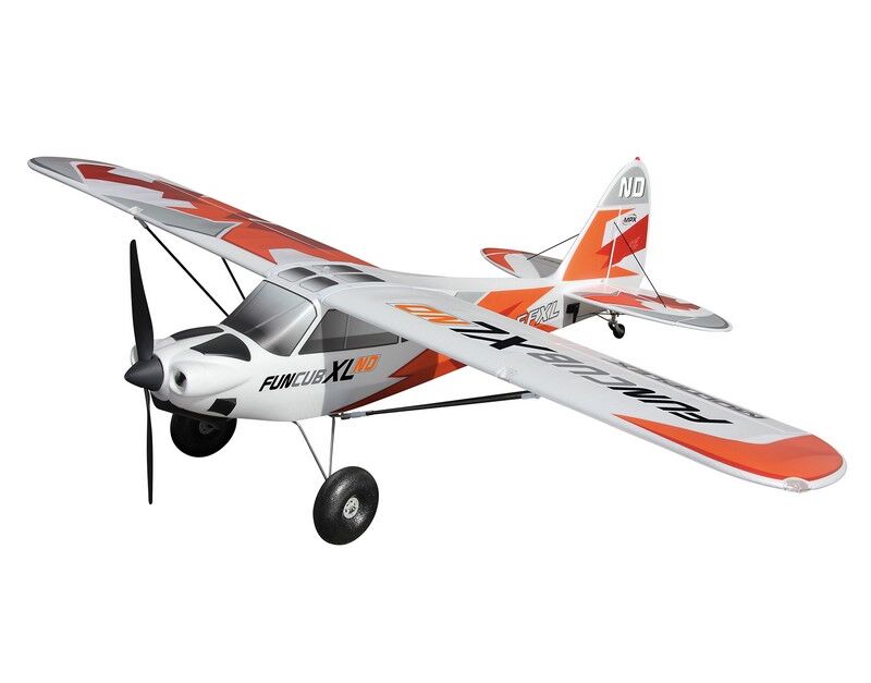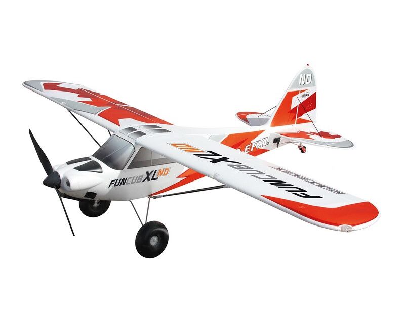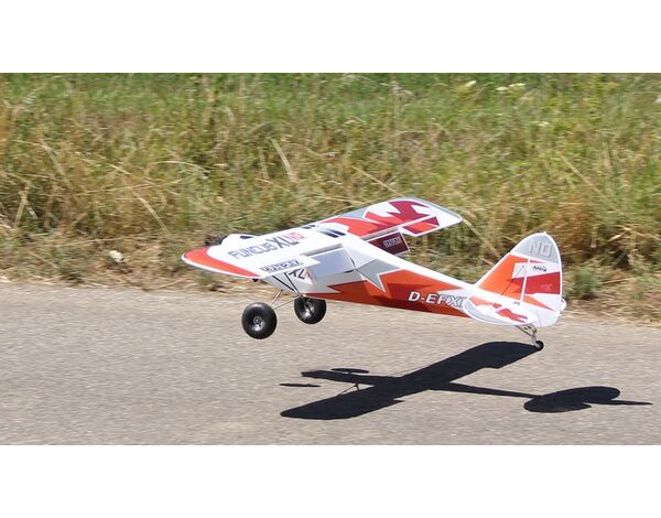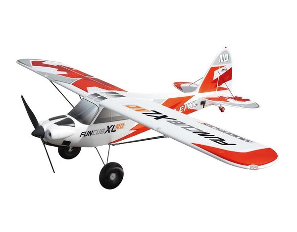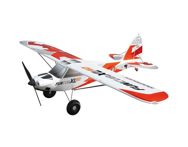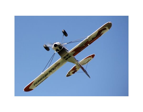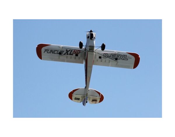 Warum ist die FunCub XL so beliebt? Sie fliegt äußerst präzise und erwachsen! Wir haben ihr große Ruderklappen, ordentlich Power und sehr ausgewogene Flugeigenschaften verpasst, so dass auch senkrechte Steigflüge, Kunstflug mit Messerflügen, und sogar Torquerollen möglich sind! Durch die Gewichtseinsparungen der XL ND wird die Flugperformance nun nochmals gesteigert. Mit extravaganten Konstruktionslösungen zeichnet sich die FunCub XL aus und setzt damit ganz neue Maßstäbe in ihrer Klasse. Ein beachtlich fester Rumpf durch „M-Frame Technologie“, stabile und leichte Carbon-Rohre (CFK) in den Tragflächen, Offset-Landeklappen und ein sehr einfaches und schnelles Aufrüsten des Modells - Dank der Verstrebung mit Schnellverschlüssen.
