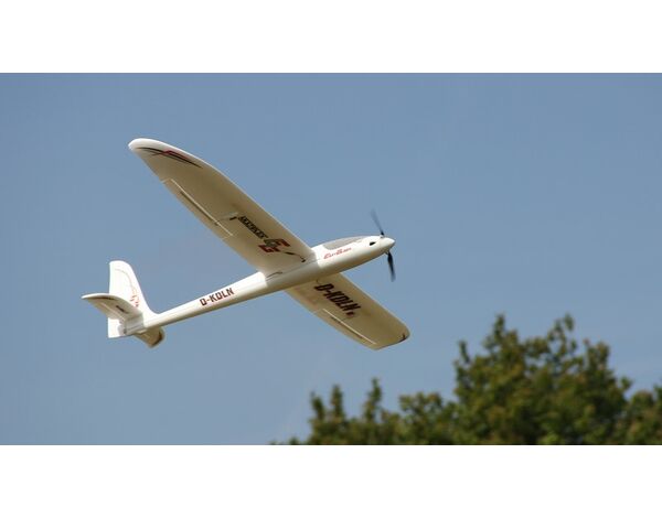 Der gutmütige und robuste Elektrosegler EasyGlider 4 mit Querruder in der 4. Generation. Seine besondere Stärke ist, mit einer niedrigen Grundgeschwindigkeit im Segelflug Thermik und Aufwinde spielend leicht auszunutzen.