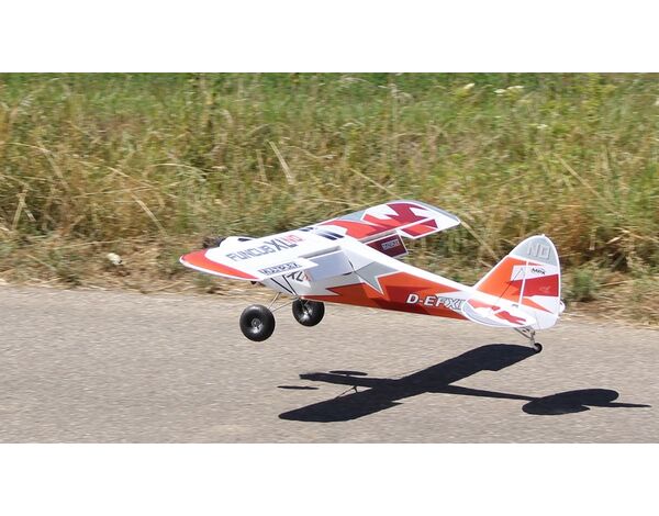Unser Ziel war es, das Gewicht zu reduzieren und ihr einen neuen frischen Look zu verpassen. Die Gewichtsersparnis haben wir durch die Neukonstruktion des Fahrwerks und der neuen EPP Räder umgesetzt, dadurch werden ca. 200g Gewicht eingespart. Hierdurch erreichen wir eine noch geringere Fluggeschwindigkeit und ein besseres Schub- Gewichts- Verhältnis . Das Tuningfahrwerk (#1-02061) ist auch bei der bestehenden Funcub Xl nachrüstbar.