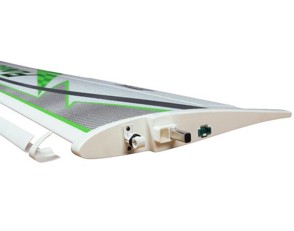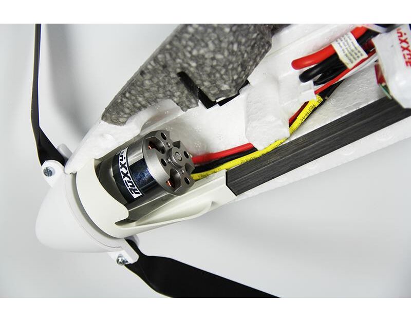 • Extrem robuste Flügel und robustes Höhenleitwerk durch fertig montierte Kunststoff-Nasenleisten und Aluminium-Kohlefaser Verbundholme
