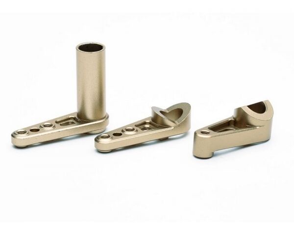 This Aluminum Servo Saver Arm Set will fit any Quantum vehicle and improve the overall performance and durability! Finished in cool amber gold colored anodizing for a great custom look.