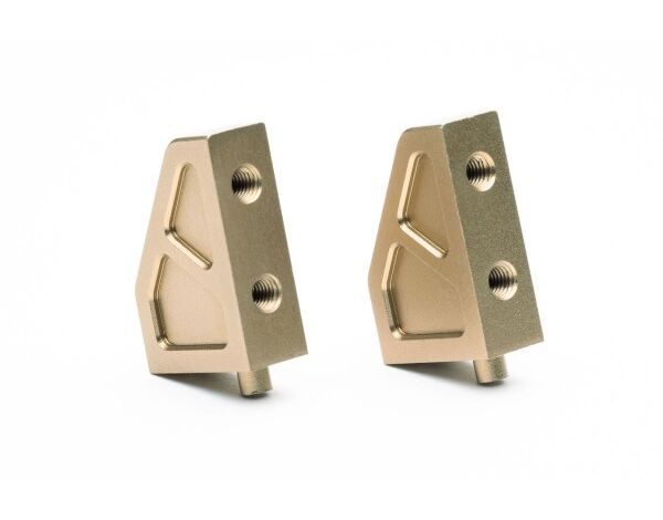 These Aluminum Servo Mounts fit the Qauntum+ and will improve the overall performance and durability! Finished in cool amber gold colored anodizing for a great custom look.
