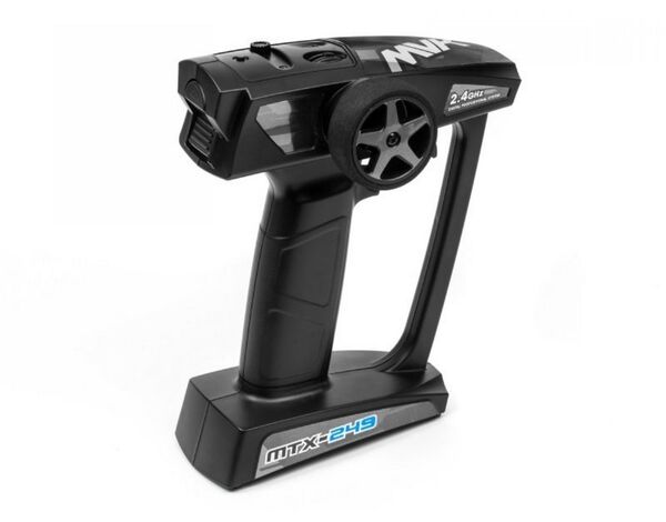The MTX-249 is a compact, lightweight pistol style radio with a steering wheel control for realistic driving and a trigger control for intuitive acceleration and braking of your car.