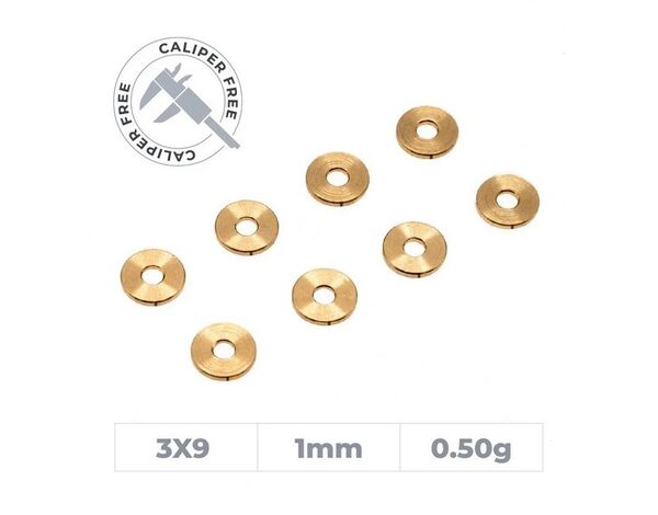 OfficinaRC Messing Unterlegscheiben Set 3,0 x 9,0 x 1,0mm (8)