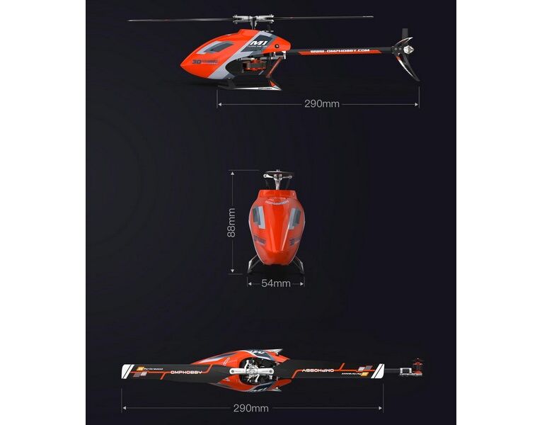 OMPHobby M1 EVO Heli BNF mit integriertem OMP Empfänger und Anschluss für S-BUS und DSMX.