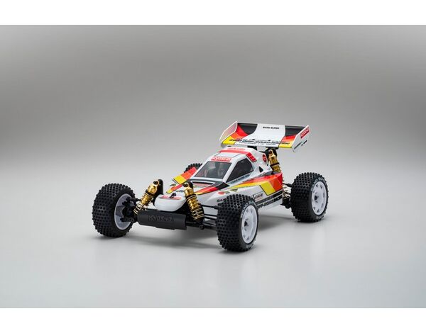 ● Das 10. Modell der Kyosho Vintage-Serie. Der beliebte 4WD-Buggy, der ein brillantes WM-Debüt feierte, wurde in modernem Stil aktualisiert.