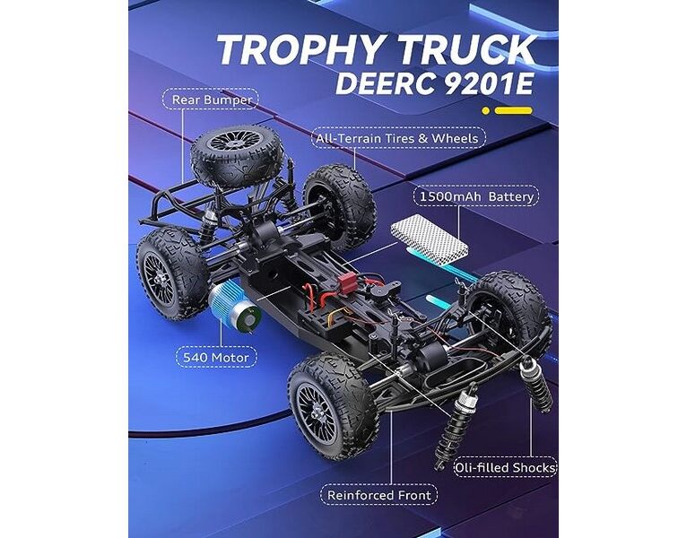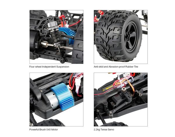 • 40km/h high speed provided by the 540 brushed motor and 2.2kg torque servo