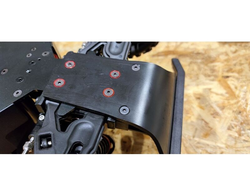 Bei diesem Bumper verwenden wir einen Materialmix. Die Lasche ist aus einem 3mm Material, der Hauptbumper aus einem anderen, 4mm starken, etwas weicheren Material.