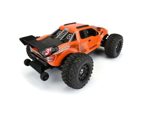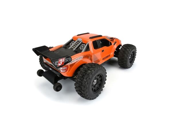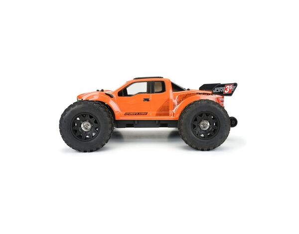 This is a 2022 Ford® Raptor Clear Body for Vorteks™. Pro-Line is proud to bring the legendary Ford® F-150 Raptor truck body to the ARRMA® Vorteks™ 4x4 3S platform! Pro-Line's detailed and functional replica includes all the rugged Raptor pre-runner style and attitude that you want and expect while being a direct fit onto the stock body mounts, with mounting points to re-use the stock wing and roof skids. This body completely transforms your Vorteks™ 4x4 and allows you to add a custom paint job to your truck, including the replica Raptor 37 Performance Package graphics kit! Calling all blue oval fans: this is the body for you!