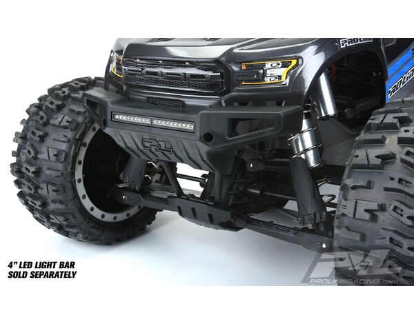 This is the PRO-Armor Front Bumper with 4" LED Light Bar Mount. Pro-Line is proud to introduce our latest in the PRO-Series of Performance Parts, the all-new PRO-Armor Front Bumper for XMAXX®! This bumper was designed from the ground up to achieve an unmatched level of Performance, Functionality and Scale Appearance. The PRO-Armor Front bumper is unique because it allows you to run Pro-Line's 4" Super-Bright LED Light Bar (sold separately) for an integrated bumper light! A scale light bar hole cover is also included along with hardware if you choose not to run the LED lights. If you are ready to take your X-MAXX® to the next level be sure to get yours today!