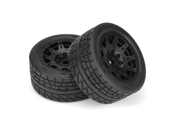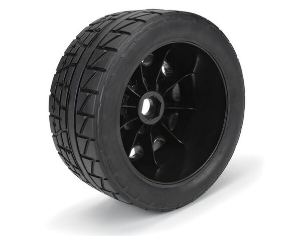 PRO1020510 | Menace HP Street BELTED Tires Mounted on Raid 5.7" Black Wheels (2) for X-MAXX®, KRATON™ 8S & Other Large Scale 24mm Hex Vehicles Front or Rear